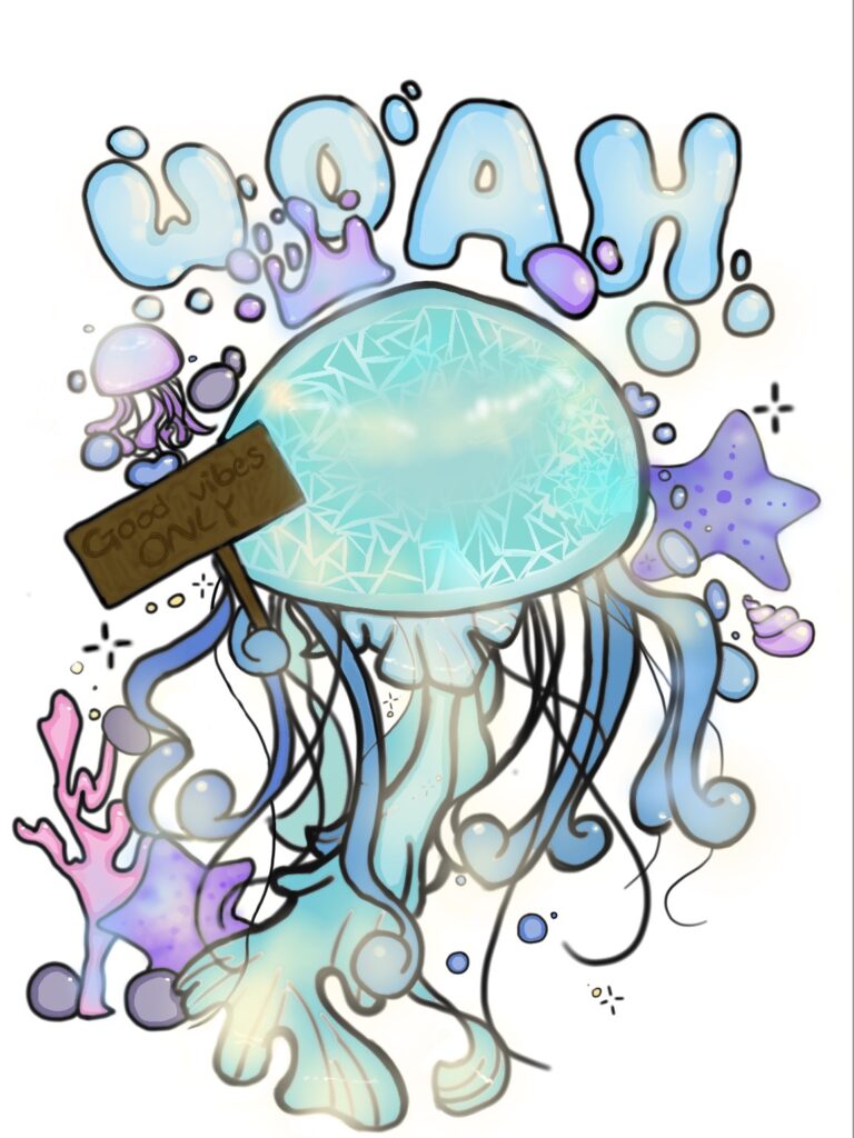 Screenshot I won my ‘WOAH’ 2026 design at school today. Basically every year at green school, there is going to be a competition, everyone is welcomed to join in the school! ( rule is you have to draw a sea creature ) If you win the gran... -